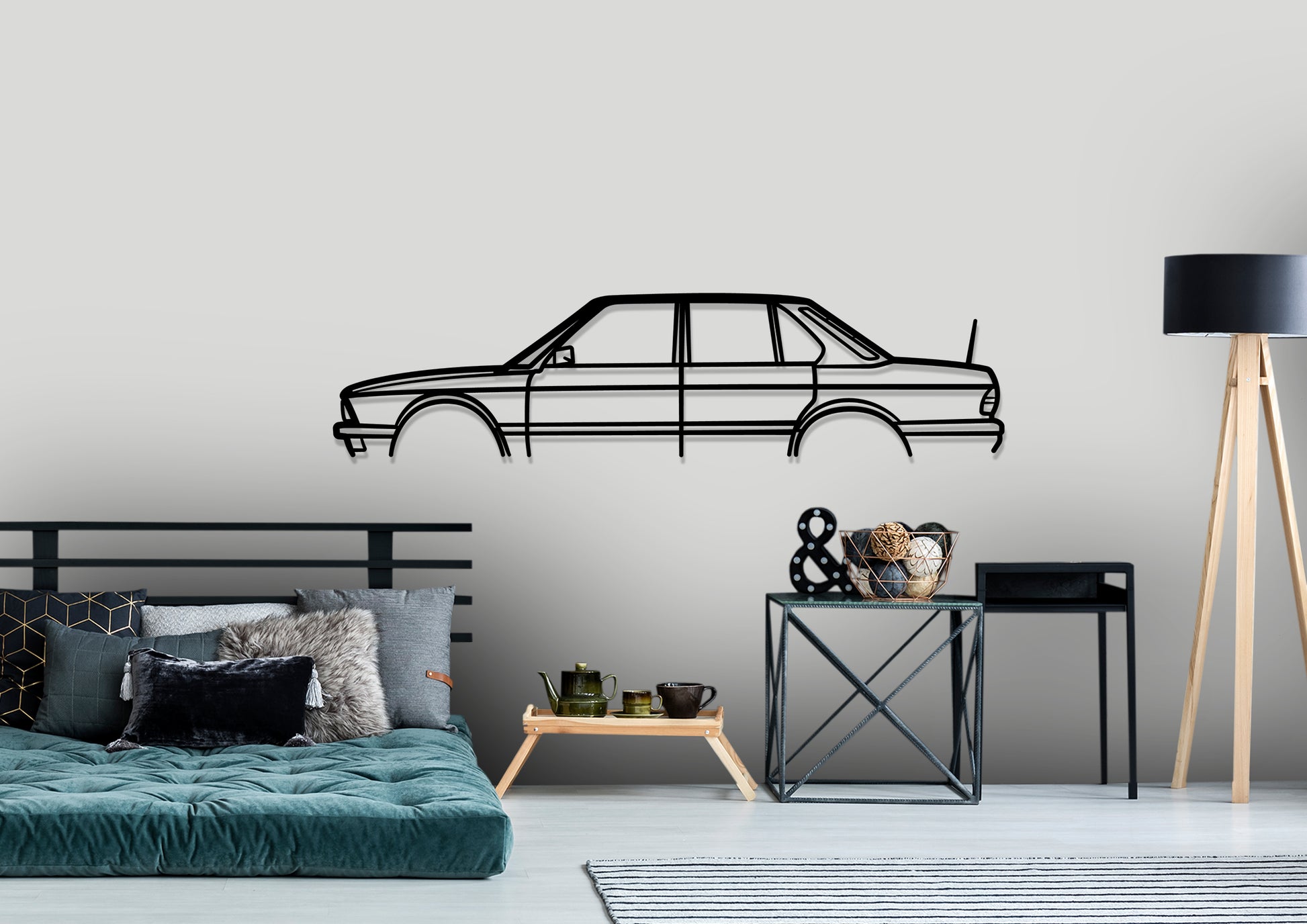 BMW E28 525e Sedan Classic Silhouette Metal Wall Art will give your office, room or garage a unique look that will catch attention to any racing, car enthusiast and will add a subtile touch to your home design.